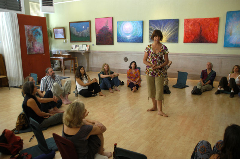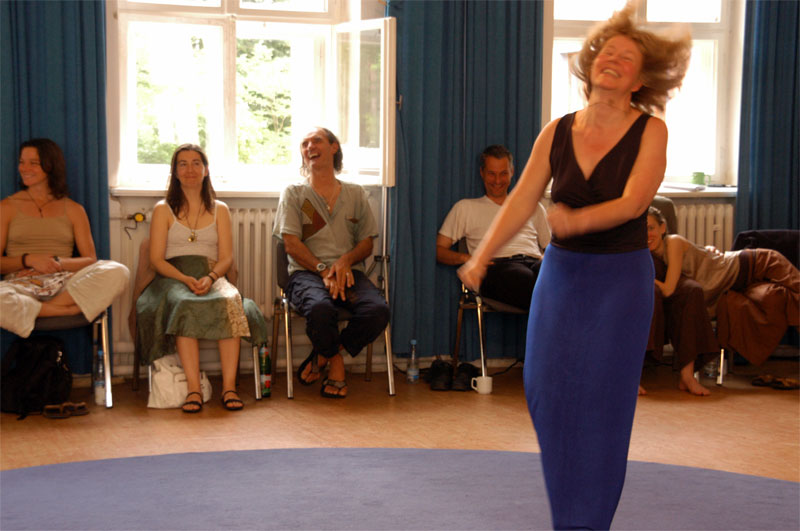 Der Kreis unterstützt die Darstellerin mit seiner konzentrierten liebenden Präsenz als Zeuge. Es kann sehr kraftvoll und berührend sein, jemanden in der Mitte wahrzunehmen, der tiefer geht. Oft berühren die Themen des Einzelnen die Menschen im Kreis sehr und deren eigene Prozesse werden angestoßen. Wir erkennen, dass unsere eigenen inneren Vorgänge ähnlich sind und dass alles, was in der Mitte passiert, Beispielcharakter hat.